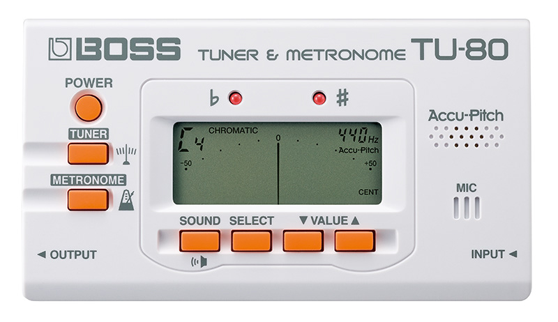 Тюнер-метроном, цвет белый. Темп: 30-250. Питание: 2 батарейки AA.