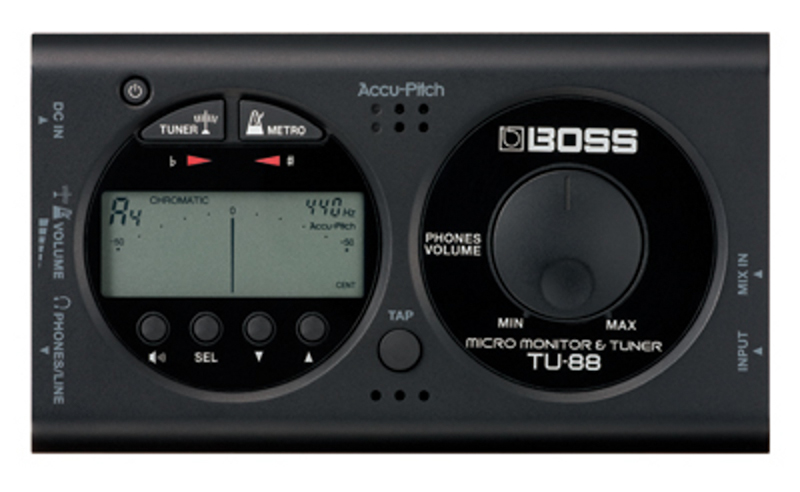 BOSS TU-88-BK гитарный тюнер. Цвет - черный. Имеет встроенный метроном и выход на наушники. Три режима настройки (гитарный, басовый и хроматический)