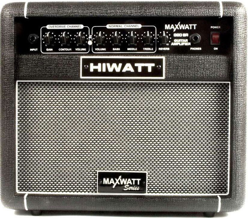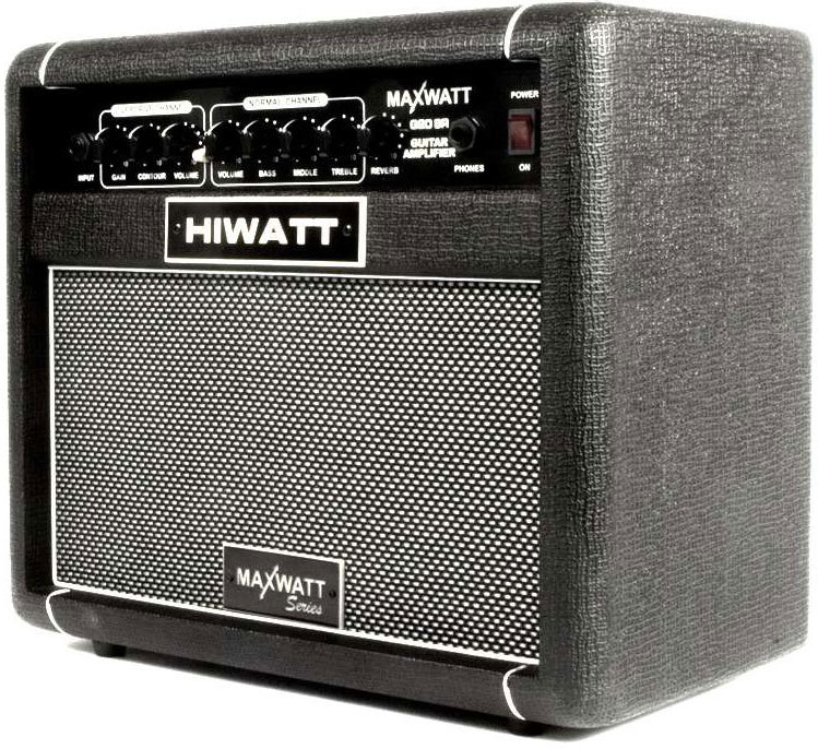 HIWATT MAXWATT G20R - Комбик с классическим британским характером звука. Честные 20 Ватт выдает 8" динамик Hiwatt High Performance в кабинете из березовой фанеры. А с помощью входа для внешнего источника звука можно репетировать под записи своих любимых музыкантов или собственные минусовки. Дополнительно есть возможность переключения каналов и эффетка реверберации с помощью футсвитча.Габариты 370Х230Х346 мм