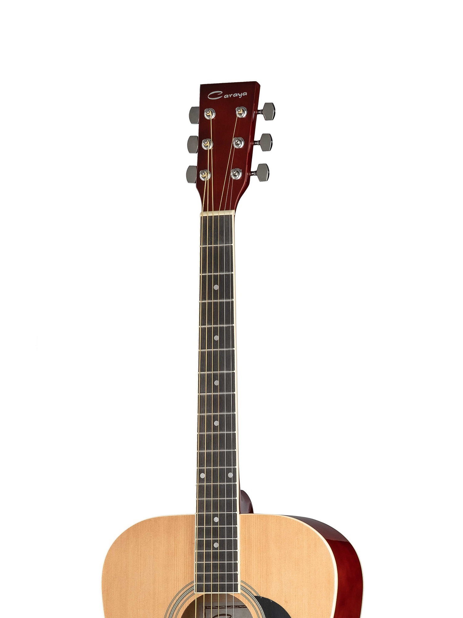Caraya F630-N - акустическая гитара. Ее корпус формы "дредноут" генерирует громкий, пробивной звук, который получает ясность и открытость тона благодаря ели, использованной для верхней деки и дополняется липой, которая присутствует в обечайке и нижней деке. Среди особенностей инструмента можно выделить естественную отделку и резной черный пикгард. Гриф с кленовой накладкой оснащен 20 ладами. Внешний вид инструмента дополняется блестящей хромированной фурнитурой.