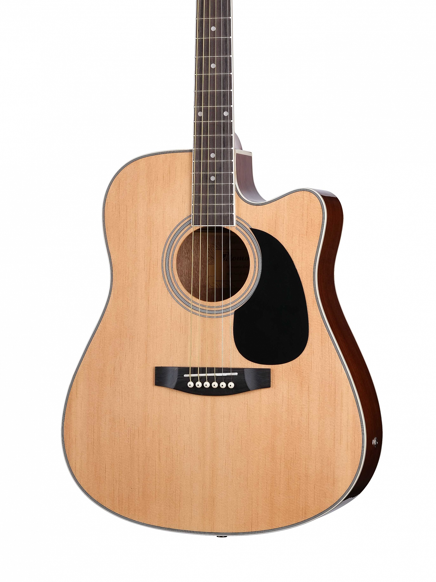 LF-4121CEQ Акустическая 6-струнная гитара 41" с вырезом и звукоснимателем. Верхняя дека - ламинат ели, задняя дека и обечайки - ламинат сапелле, гриф - эвкалипт, накладка грифа - палисандр, бридж - палисандр, колковая механика - хромированная, окантовка - 5-слойный кант, цвет - натуральный. HOMAGE