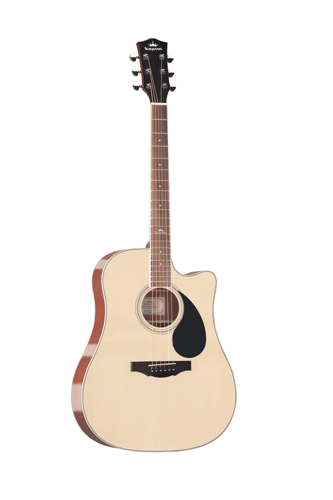 Акустическая гитара с корпусом Dreadnought, обладает мощным сбалансированным звучанием с глубокими низкими и ярко выраженными высокими частотами. Инструмент хорошо подходит как для игры пальцами, так и медиатором, и может использоваться в качестве сольного и аккомпанирующего инструмента. Верхняя дека гитары Kepma D1C сделана из ламината ели, делая звук ярким и звонким. Нижняя дека и обечайки выполнены из ламината махагони, который привносит в звук теплоту и объем. Низкая постановка струн и тонкий гриф предлагают комфорт при игре, а вырез на корпусе обеспечивает удобный доступ к верхним ладам для исполнения пассажей и мелодий.