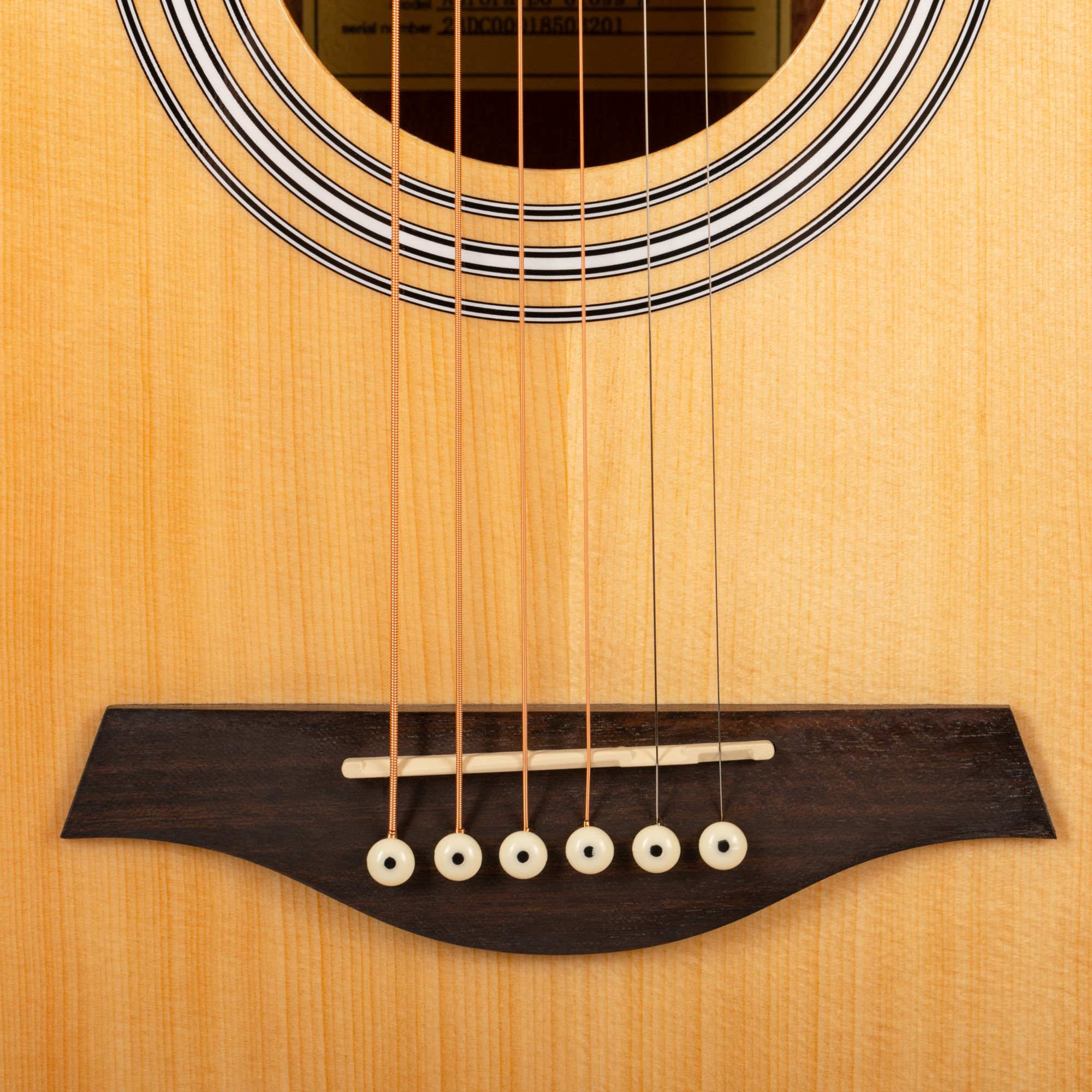 ROCKDALE Aurora D6 Gloss NAT акустическая гитара. Форма корпуса Dreadnought. Цвет натуральный. Глянцевое покрытие. Верхняя дека из ели. Нижняя дека и обечайка из махагони. Гриф из красного дерева. Анкерный стержень. Накладка на гриф из палисандра. Закрытые колки.