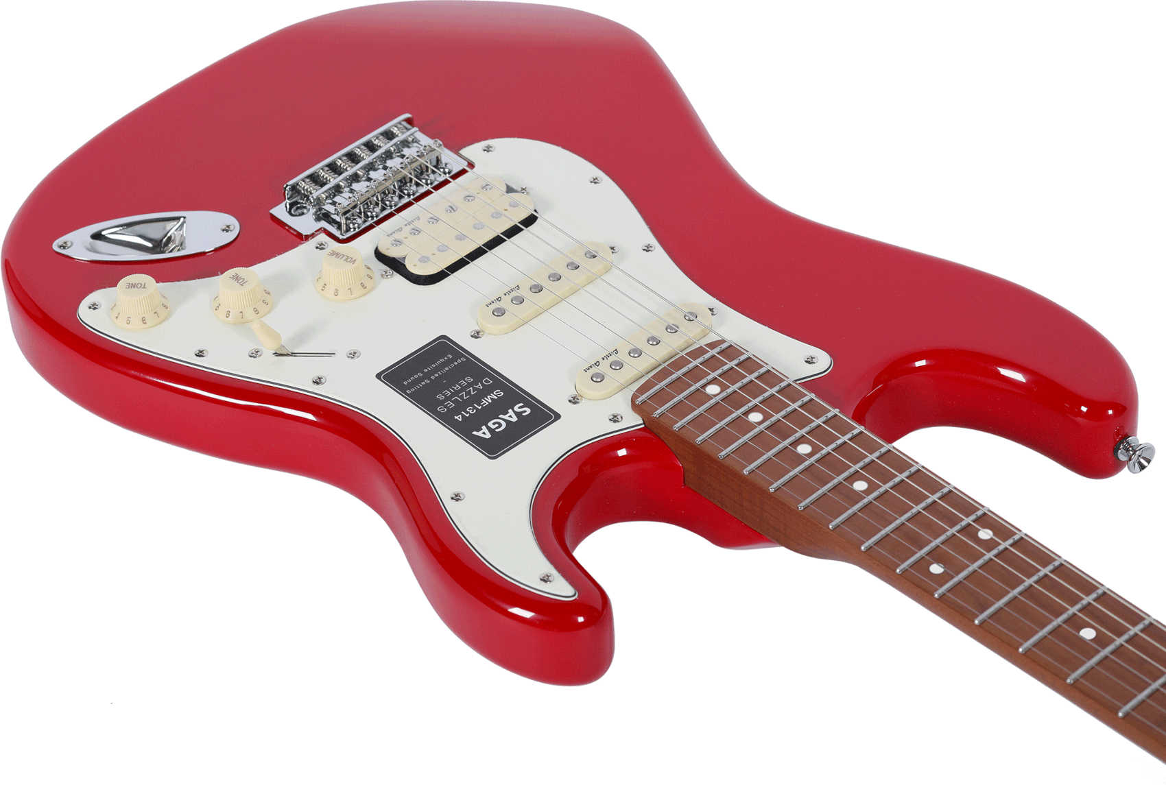 Яркая электрогитара Saga SMF1314RE создана для истинных ценителей музыки, стремящихся раскрыть свой творческий потенциал. Ее корпус имеет форму стратокастер, обеспечивая комфорт и удобство при игре. Эта модель выделяется своим насыщенным красным цветом, привлекающим внимание и подчеркивающим индивидуальность музыканта. Электроника SSS открывает широкий спектр звучания, от мягких и теплых ритмов до ярких и выразительных соло. Каждая нота звучит чисто и ясно, позволяя исполнителям экспериментировать с музыкальными идеями. Благодаря качественной сборке и использованию надежных материалов, SMF1314RE гарантирует долговечность и надежность. Эта модель комплектуется удобным чехлом, который обеспечивает защиту при транспортировке и хранении.