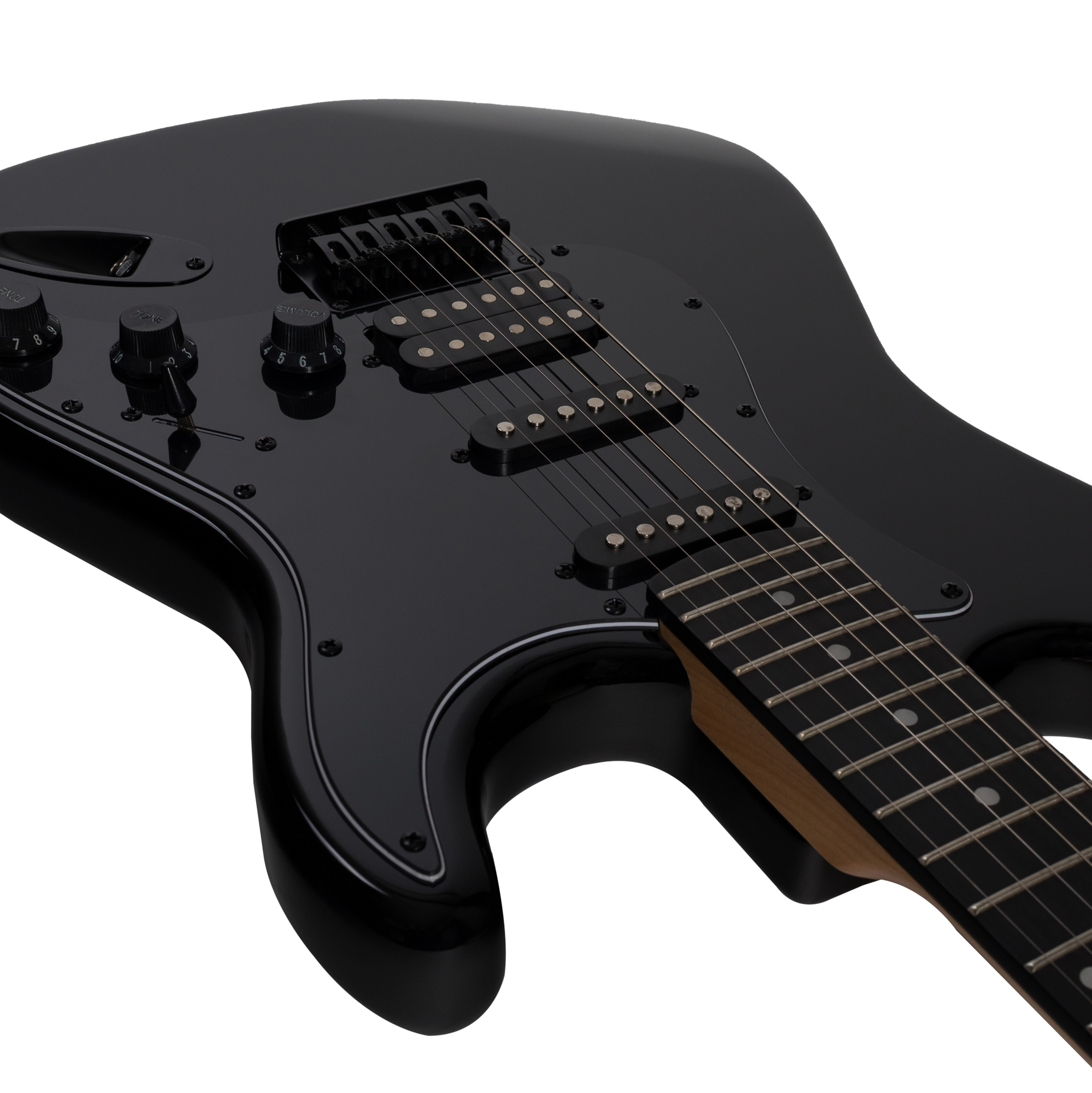 ROCKDALE Stars HT HSS Black Limited Edition электрогитара. Форма корпуса стратокастер. Цвет черный. Глянцевое покрытие. Хромированная фурнитура. Корпус из тополя. Гриф из клена. 22 лада. Анкерный стержень. Накладка на гриф из древесно-полимерного композита. Фиксированный бридж (hardtail). Конфигурация звукоснимателей H-S-S. Управление звуком: громкость, 2 тона, 5-ти позиционный переключатель. Рекомендованный диаметр струн 10/46.