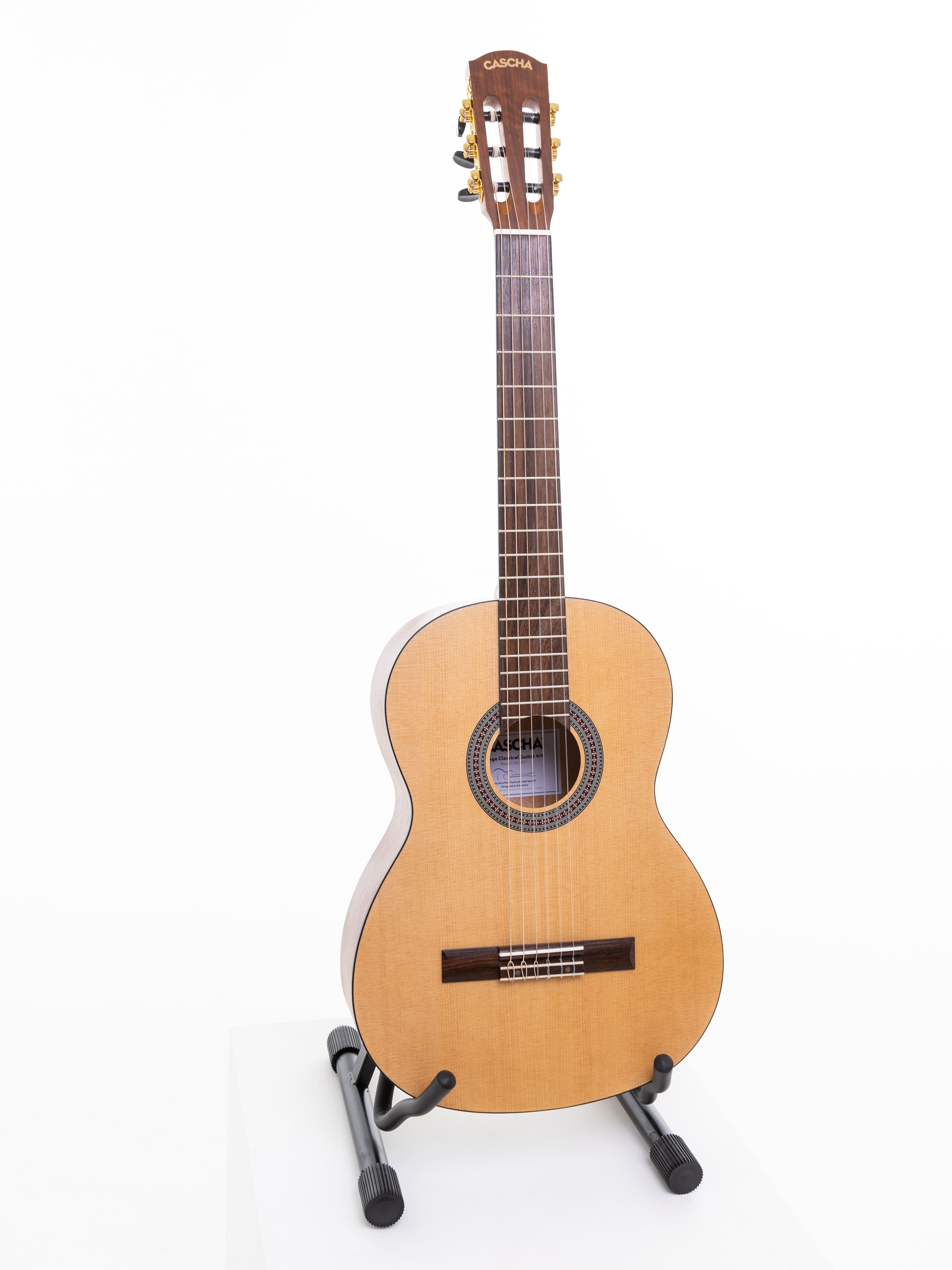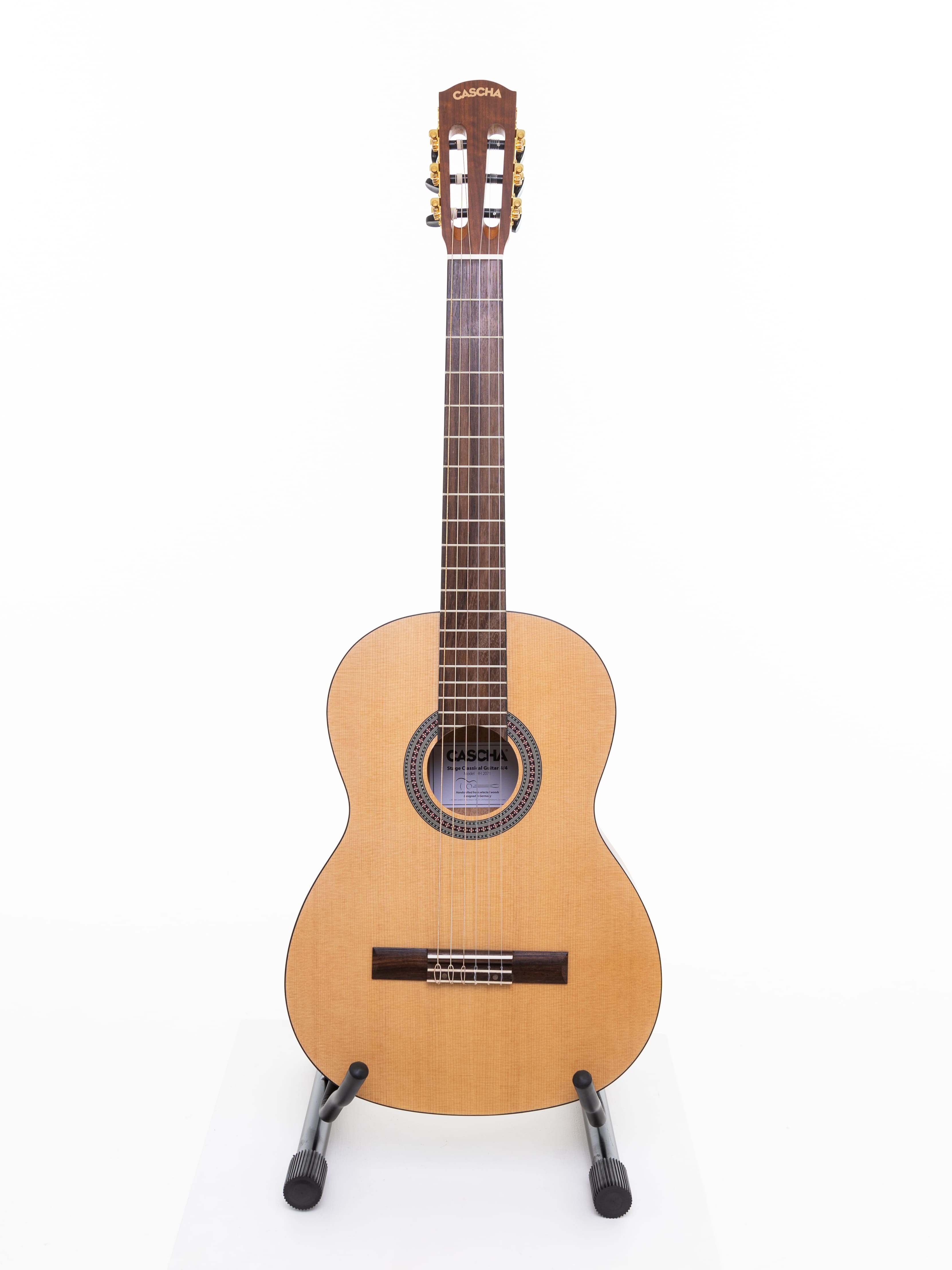 Древесина, используемая в гитарах, очень важна для звука. Поэтому для классической гитары Cascha используются только отборные породы дерева. Верхняя дека гитары изготовлена из ели и обеспечивает теплое звучание. Нижняя дека и обечайка изготовлены из липы высокого качества, гриф - из древесины окуме. Накладка грифа и бридж изготовлены из прочного композитного дерева. Размер: 3/4.