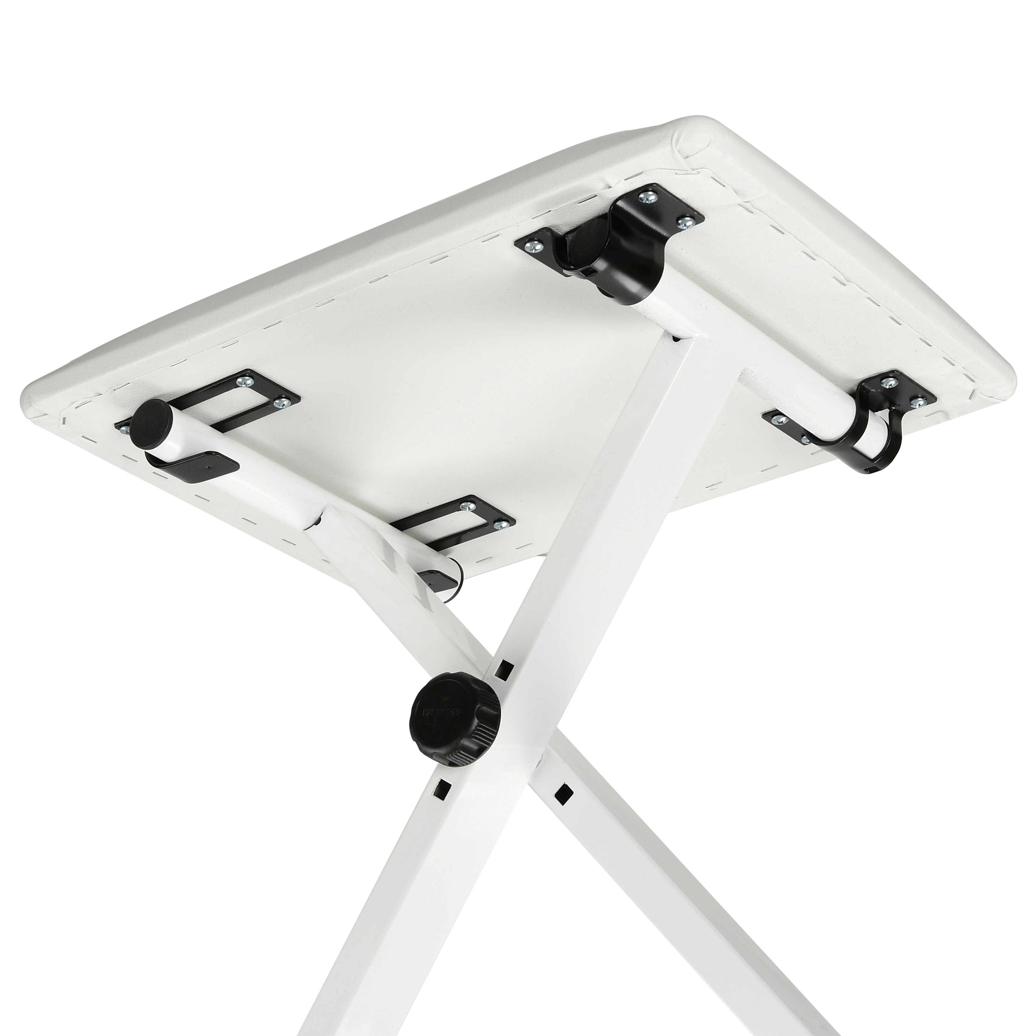 Банкетка для пианино, рояля, синтезатора DEKKO JR-701 BK металлическая, прямоугольная (размер 39,5х29,5см), 3 положения регулировки высоты (42-45-48 см.), мариал обивиа - кож. зам., складная, цвет - белый.