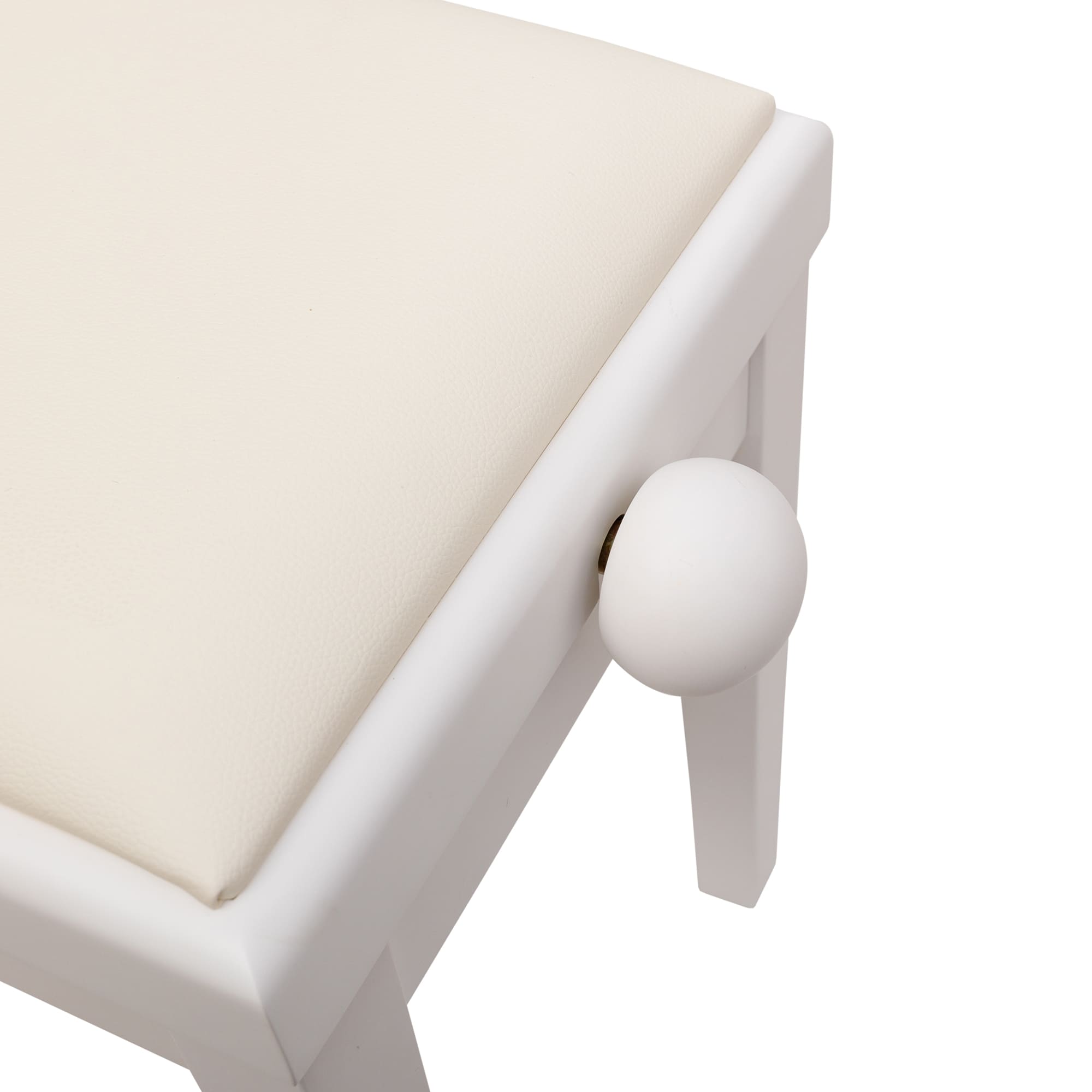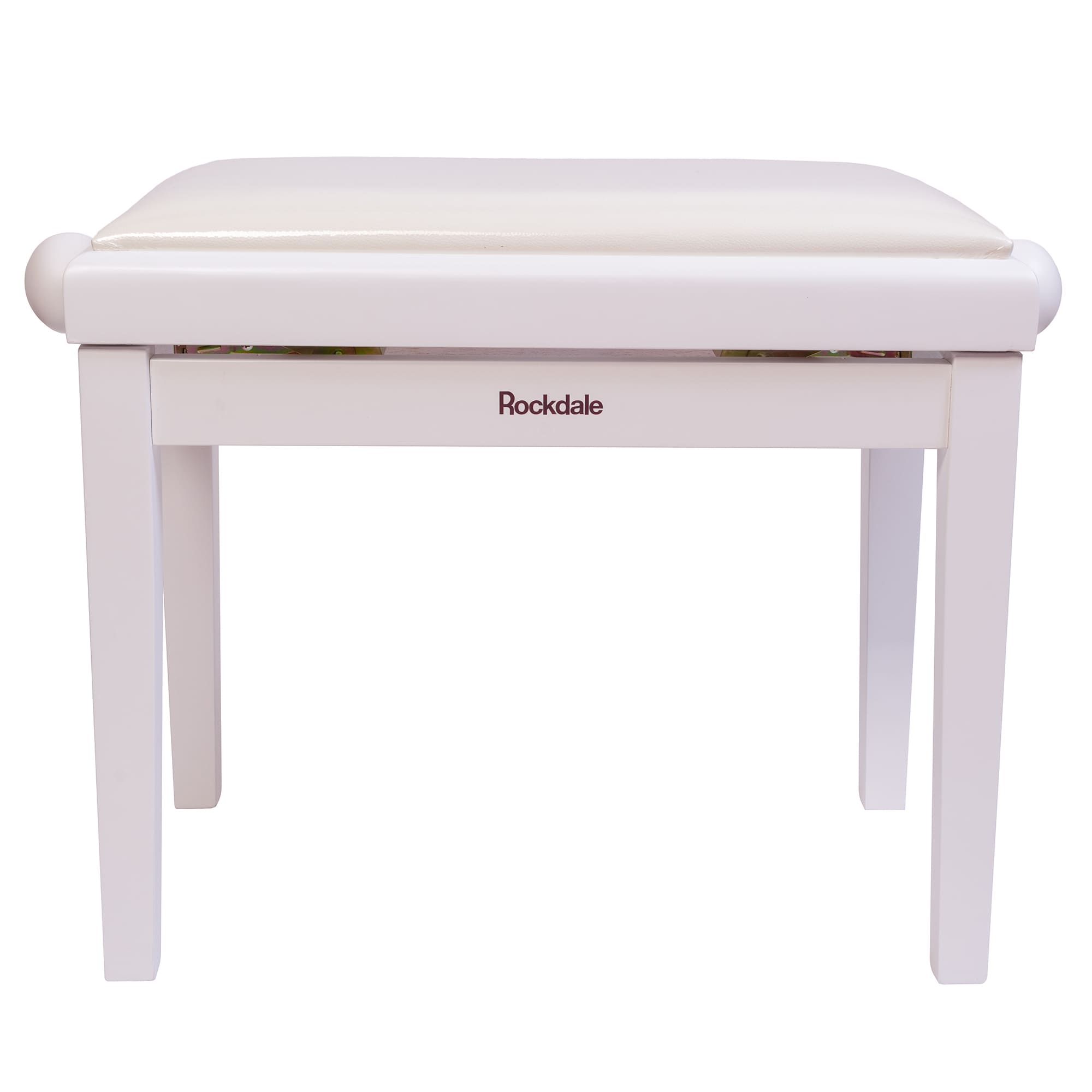 ROCKDALE RHAPSODY 131 WHITE – удобная и прочная банкетка для пианиста с регулируемой высотой. Форма банкетки – традиционная прямоугольная, размер сиденья: 56 см х 33 см. Высоту можно настроить от 48 до 57 см. Прочные деревянные ножки позволяют устойчиво расположить банкетку на полу. Материал сиденья из износостойкого покрытия из кожзама. Модель представлена в белом цвете и имеет элегантный, классический внешний вид.