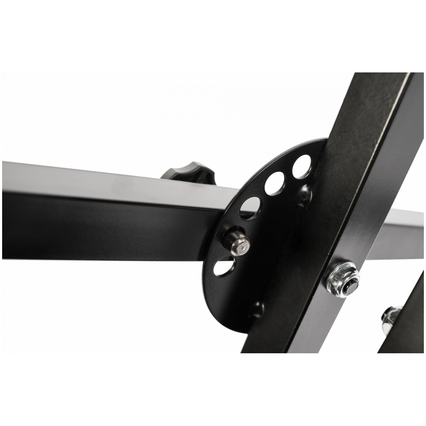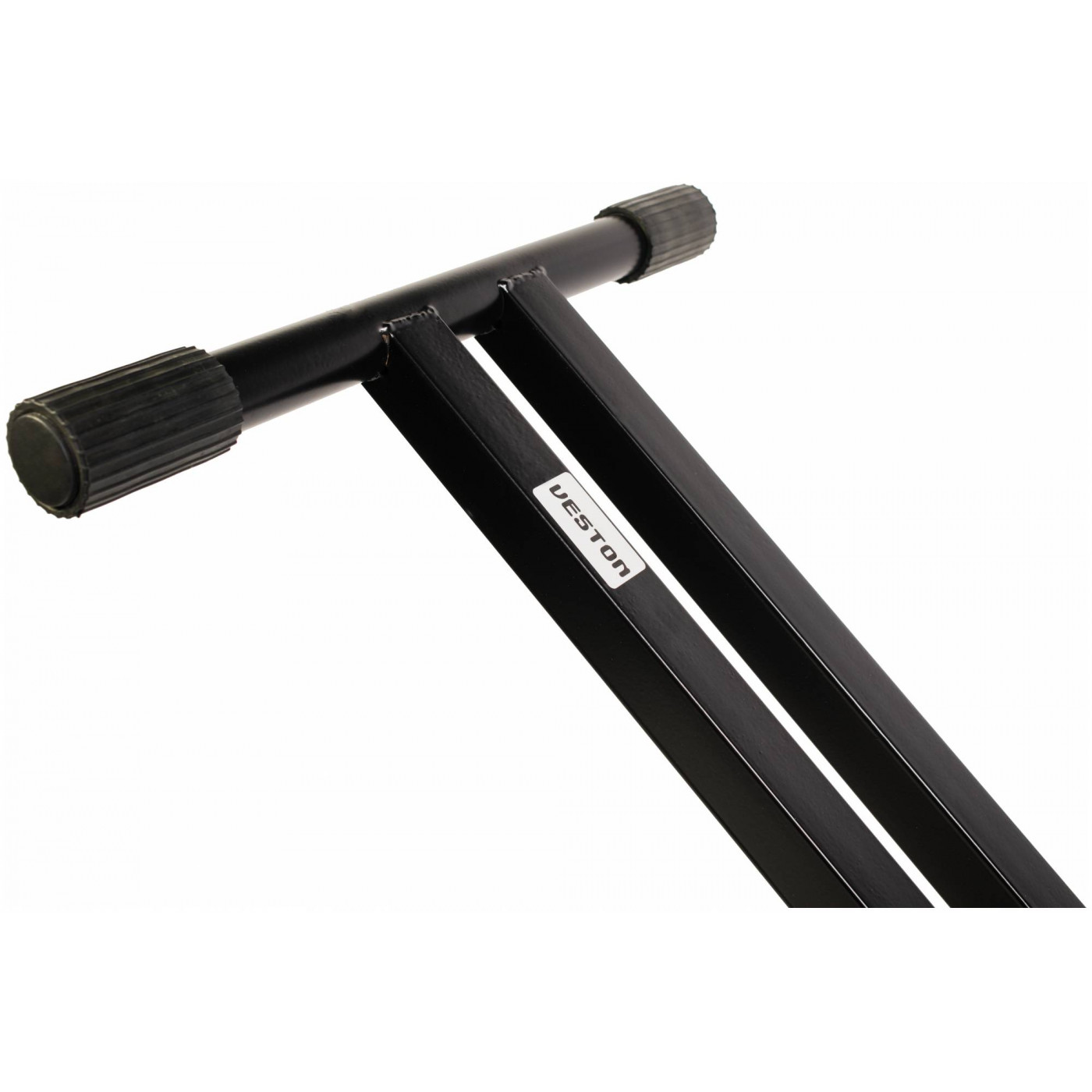 Стойка для синтезатора VESTON KSA006 с надежной фиксацией высоты в любом положении. Специальные резиновые накладки на ножки и стойки обеспечивают устойчивость и предотвращают напольное покрытие от повреждений. А специальные накладки на опору защищают ваш инструмент от соскальзывания со стойки и механических повреждений (царапин).