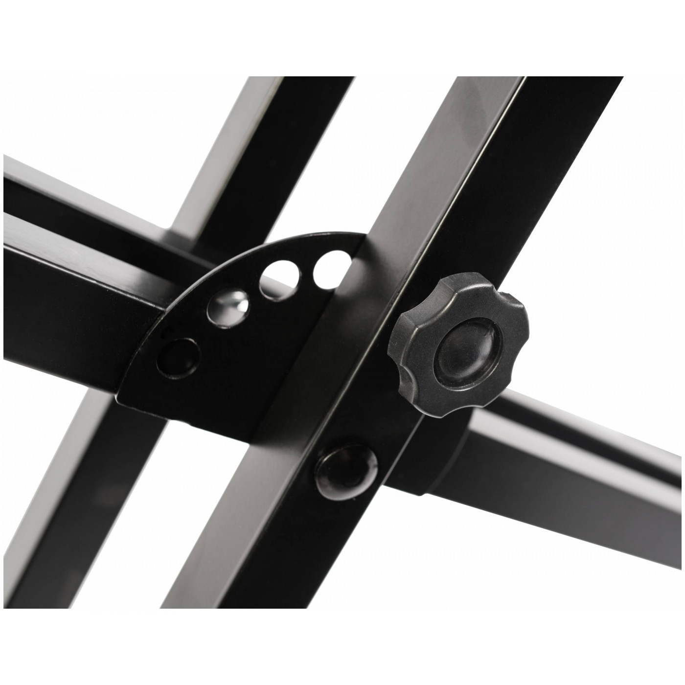 Усиленные двойные ножки позволяют использовать подставку для более тяжелых инструментов, таких как цифровые пианино.