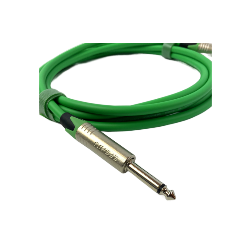 Несимметричный литой гитарный кабель 3м, позолоченный гальванизированный в черном лаке моно джек, 18 AWG, 0,82 кв.мм, зеленый
