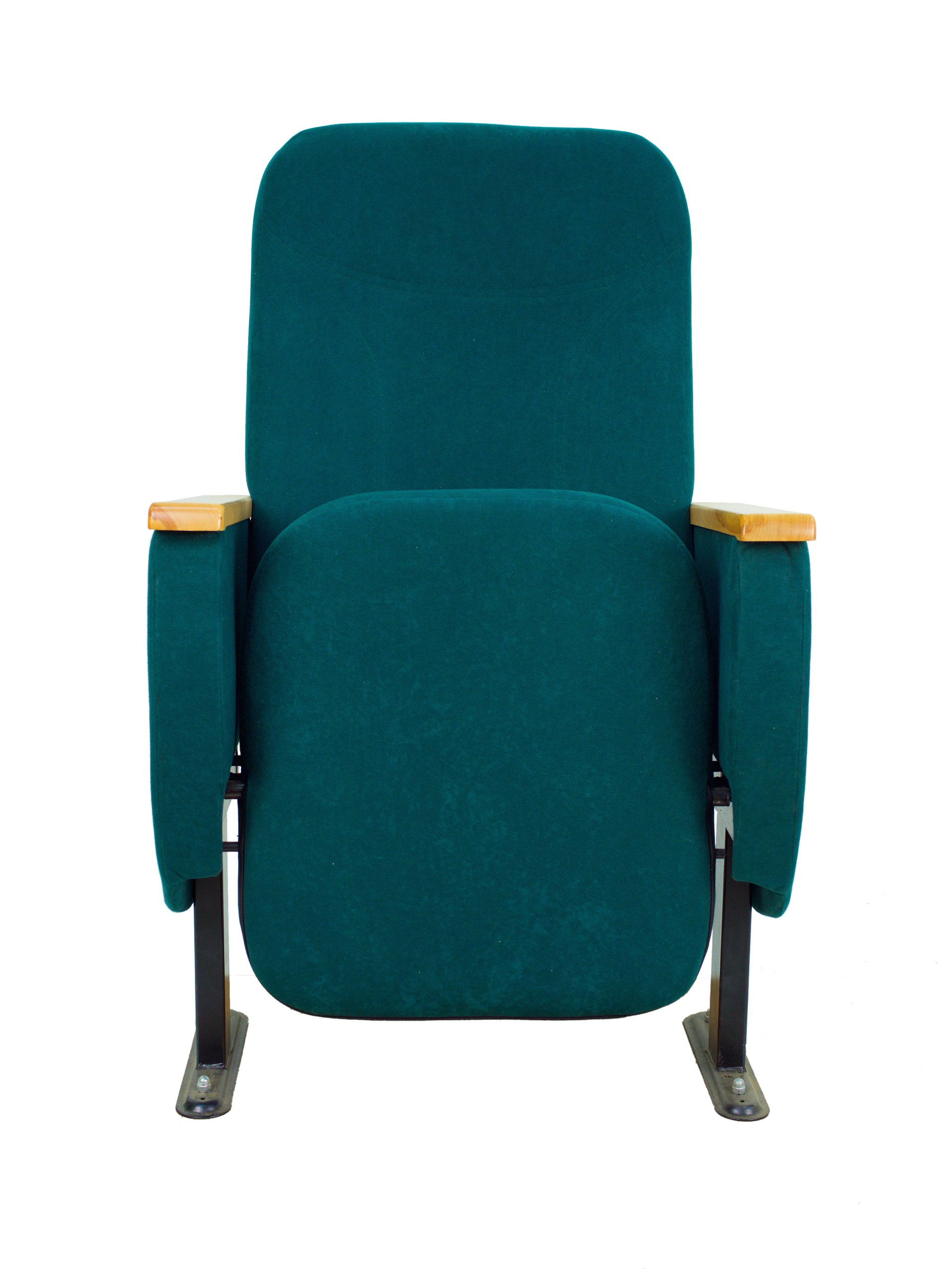 Приятный цвет обивки данного театрального кресла не будет раздражать глаз и впишется в любой современный интерьер. Деревянные подлокотники прекрасно дополняют общий стиль кресла. Откидное сиденье позволяет экономить место в проходе, что позволит разместить больше мест в зале. Толстая подушка в представленном кресле позволит гостям чувствовать себя вполне комфортно долгое время, а возможность крепления к полу повысит устойчивость конструкции.