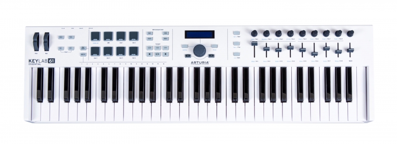 61 клавишная MIDI клавиатура, ПО Analog Lab 2, Ableton Live Lite, UVI Grand Piano, LCD дисплей, 1 clickable энкодер, 9 вращательных энкодеров, 9 фейдеров, 8 RGB пэдов, колеса Pitch&Modulation, 1/4" Jack вход педали сустейна, MIDI Out, USB