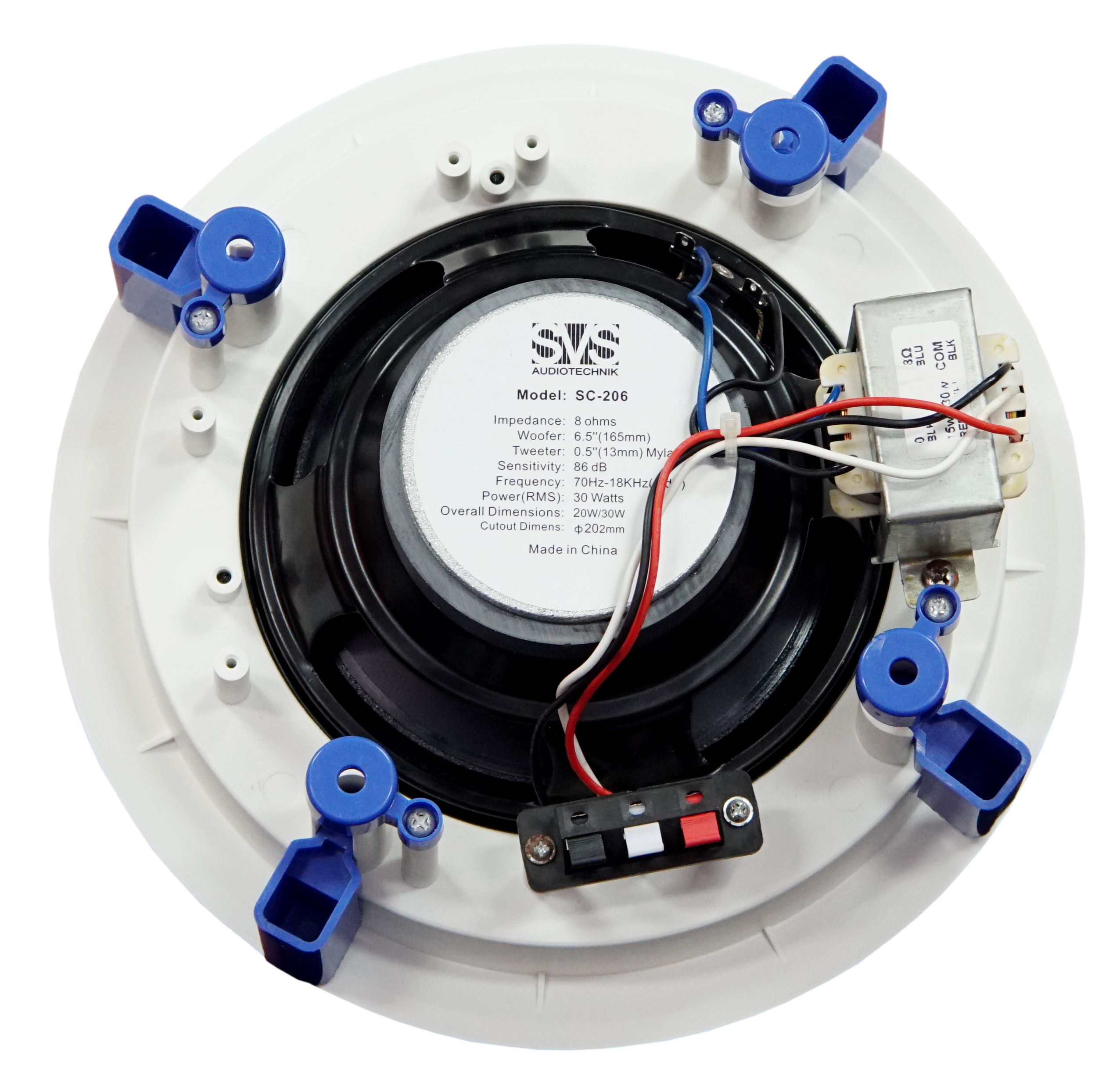 Громкоговоритель потолочный 6.5", 15/30 Вт, 8 Ом, 70/100В, 86дБ, 70-18000Гц, монтажное отверстие диам 202мм, габариты: диаметр 233мм, высота 95мм