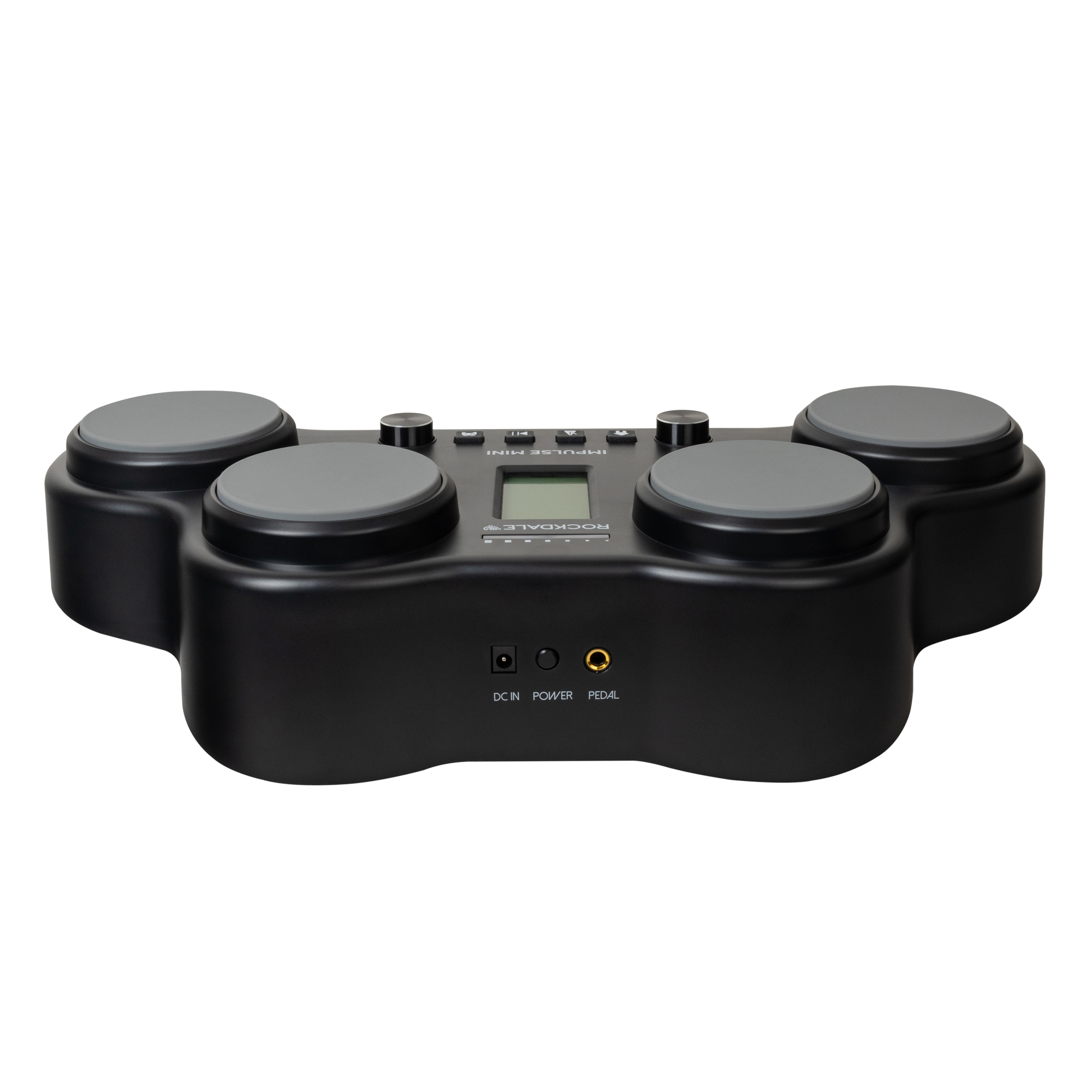 ROCKDALE Impulse Mini Black портативная электронная ударная установка, цвет оранжевый, 4 чувствительных к силе ударе пэда, 30 пресетов ударных, 163 тембра, 25 композиций с функцией обучения, метроном, встроенная акустика, LCD-дисплей пластиковые педали hi-hat и бас-бочки, палочки, адаптер в комплекте выход на наушники 3,5мм питание от адаптера и 6 AA батареек (батарейки в комплект не входят)