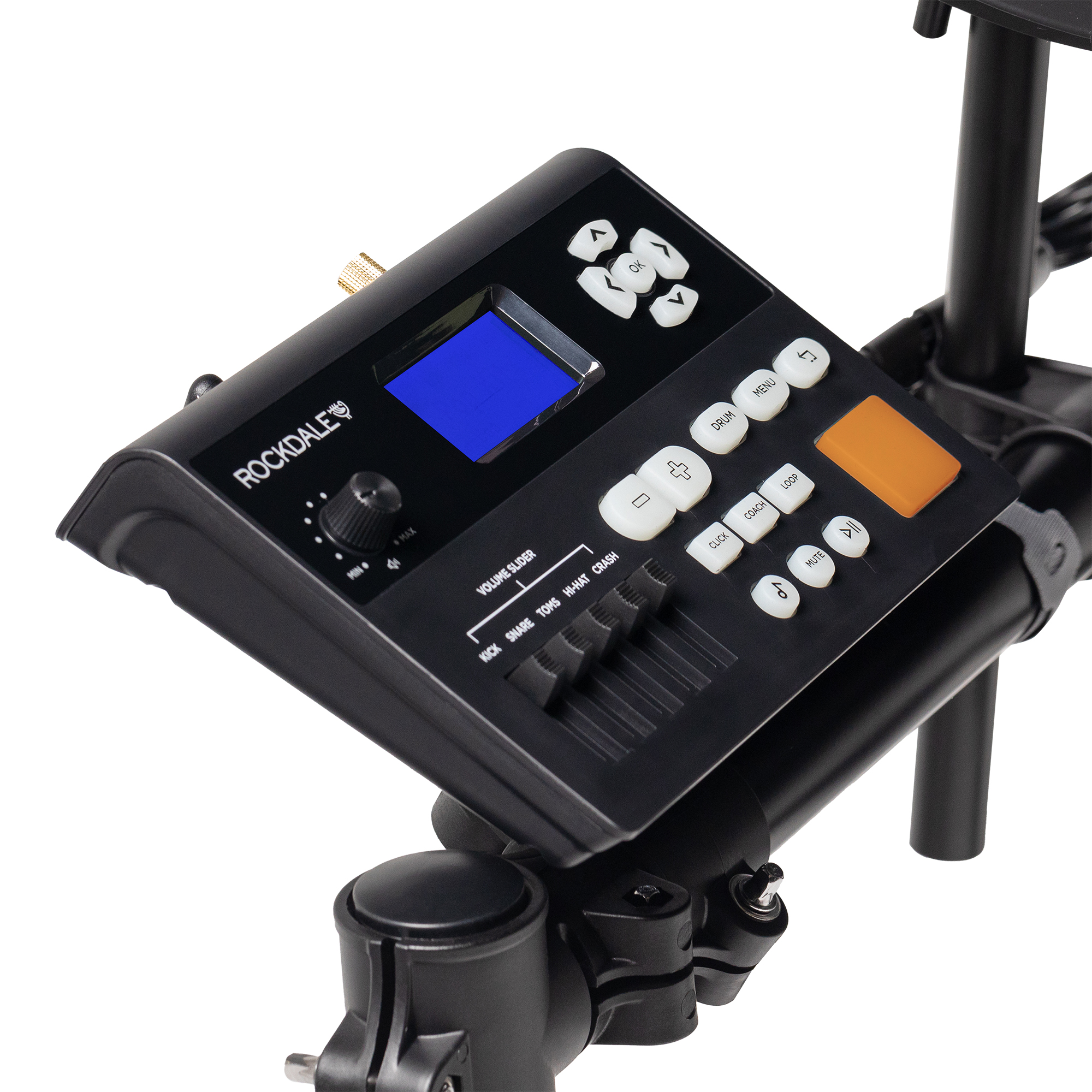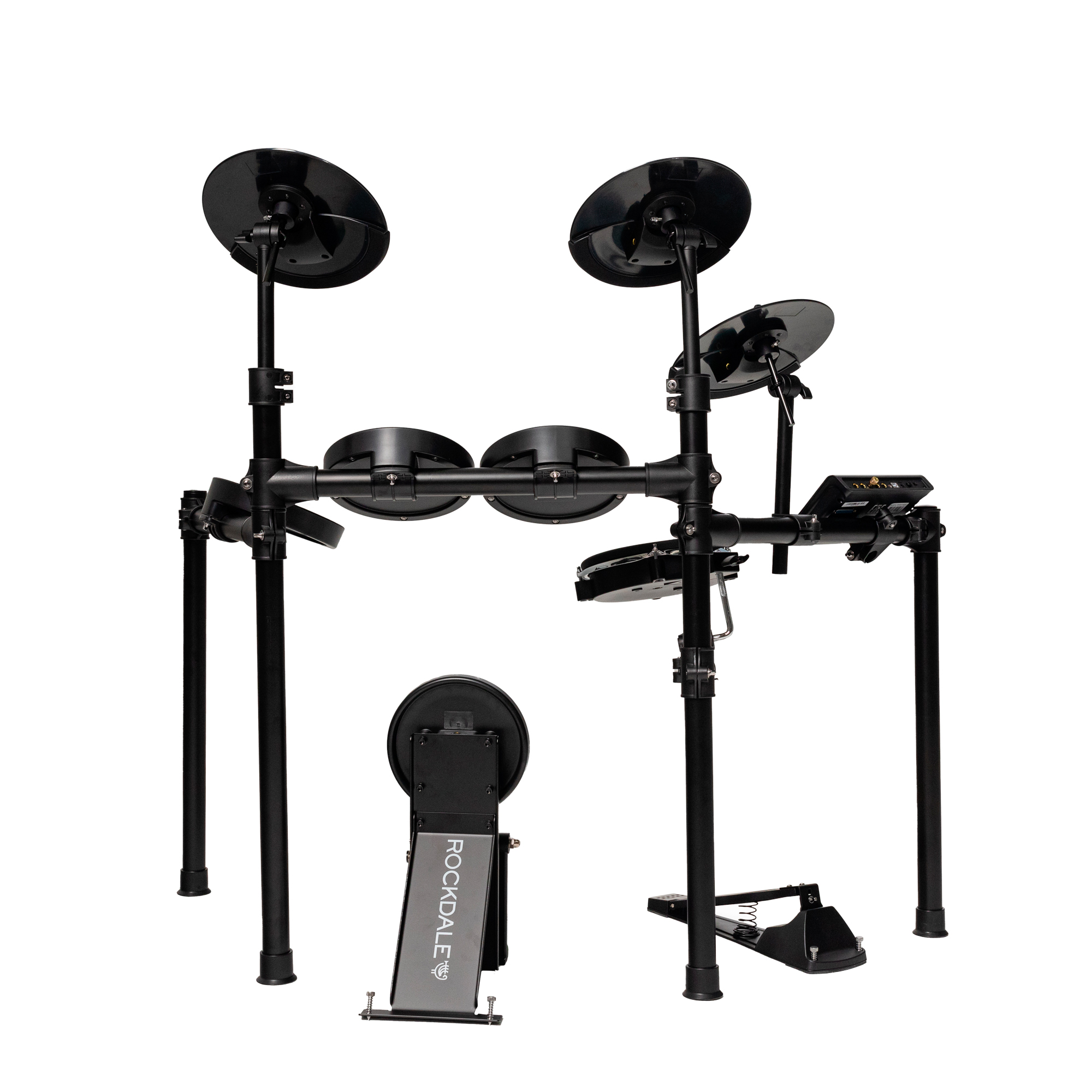 ROCKDALE Tempest Mesh 2 (SD61-5) Электронная ударная установка. Сетчатые пэды. Двухзонные 8” малый барабан и 10” тарелки Hi-hat, Crash, Ride. Однозонные 7,5” томы. Функция глушения тарелок. Педаль-триггер Hi-hat и педаль-колотушка бас-барабана. Стальная рама. Перкуссионный звуковой модуль SM120. 30 пресетов. 447 тембров. Входы CD/MP3/Aux, USB-MIDI, линейный выход.