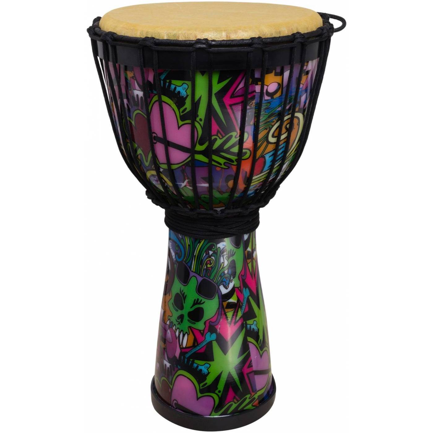 TERRIS DPR-08 Black - Джембе размера 08" х 16" из пластика с синтетической мембраной и ярким дизайном, навеянным HIP-HOP культурой. Модель TERRIS DPR-08 Black также декорирована плетенными нитями, имитирующими веревочную настройку.