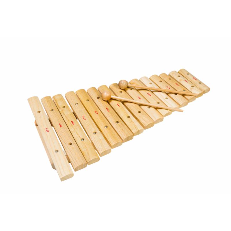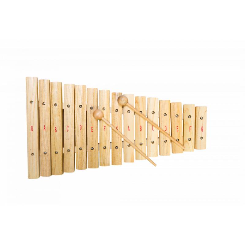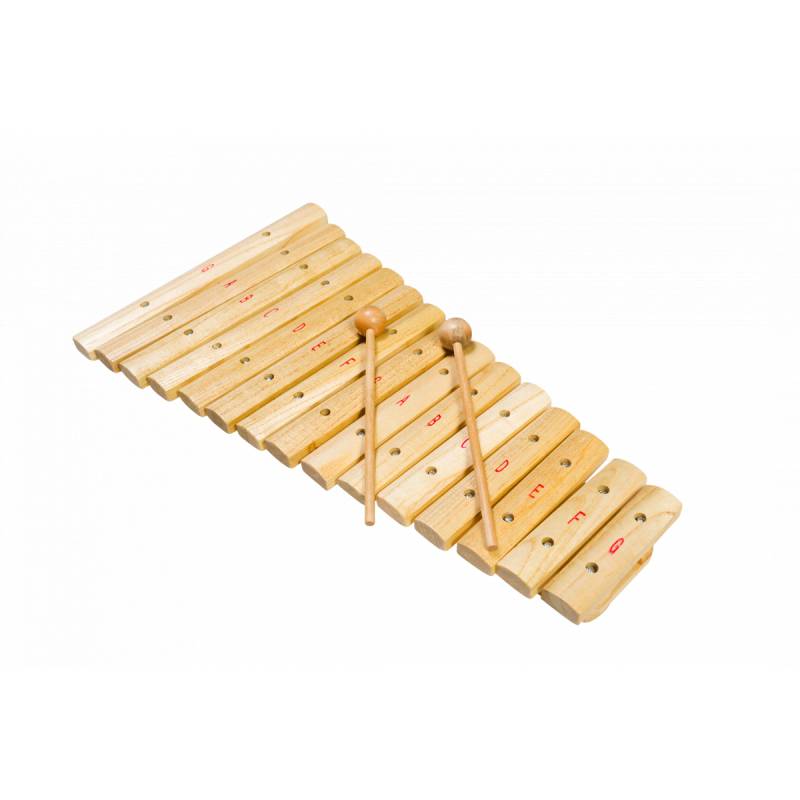 Ксилофон – ударный музыкальный инструмент, имеет древнее происхождение — простейшие инструменты подобного типа встречаются у разных народов Африки, Юго-Восточной Азии и Латинской Америки. В Европе первые упоминания о ксилофоне датируются началом XVI века. Представляет собой ряд деревянных брусков разной величины, настроенных на определённые ноты, по которым ударяют палочками. Инструмент может использоваться как соло, так и в ансамбле. Ксилофон поможет развить музыкальный слух ребенка, чувство ритма, и при этом настолько легок в применении, что даже у малыша, не владеющего нотами, обязательно получится мелодия.