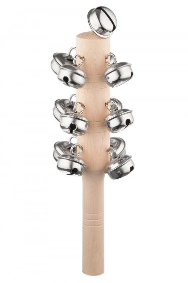 Бубенцы деревянные на ручке DEKKO G19-13A (Джингл-стик), натурального цвета, 13 бубенцов, размер инструмента – 19 cм