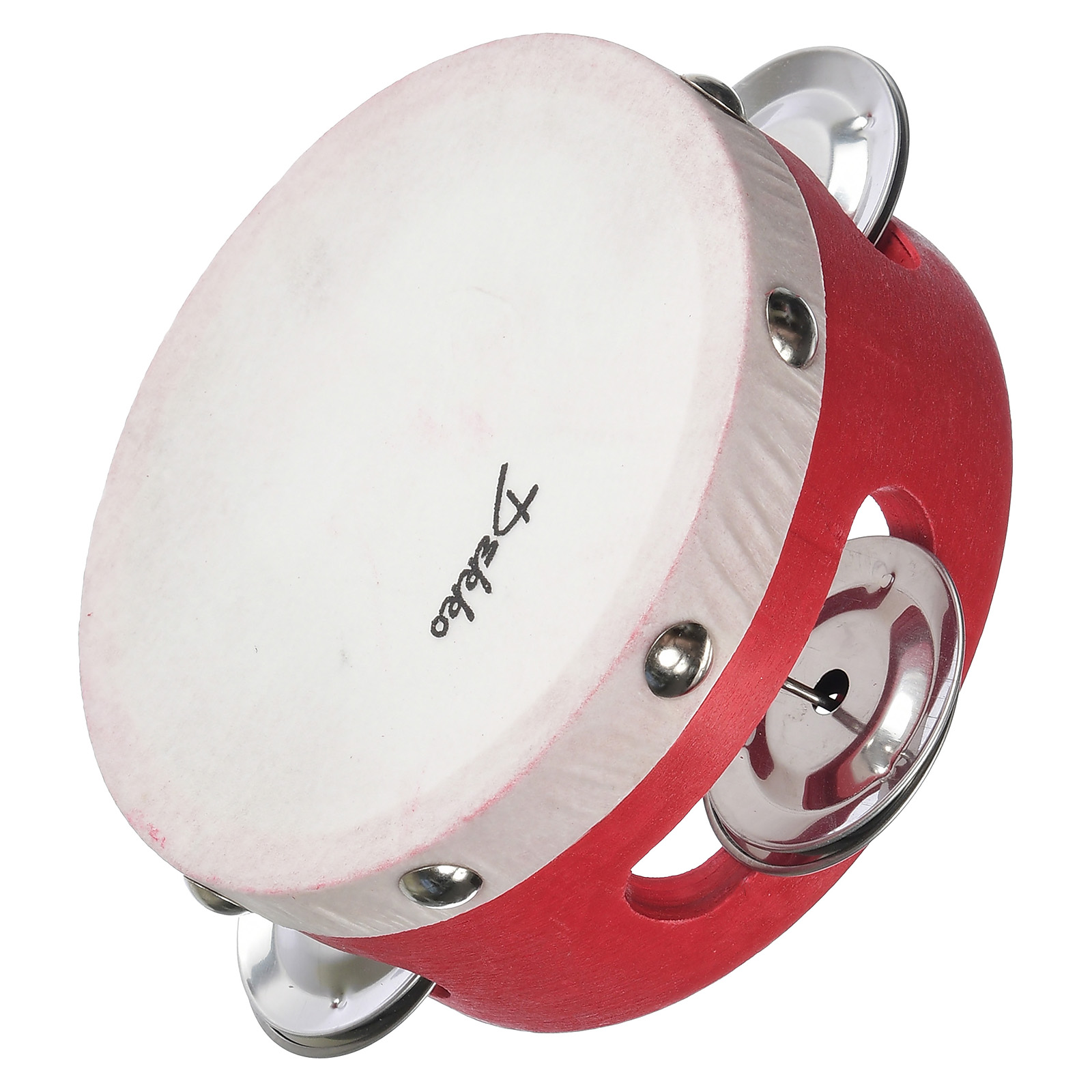 Бубен деревянный корпус , диаметр 10 см, кожаная мембрана, 3 пары тарелочек
