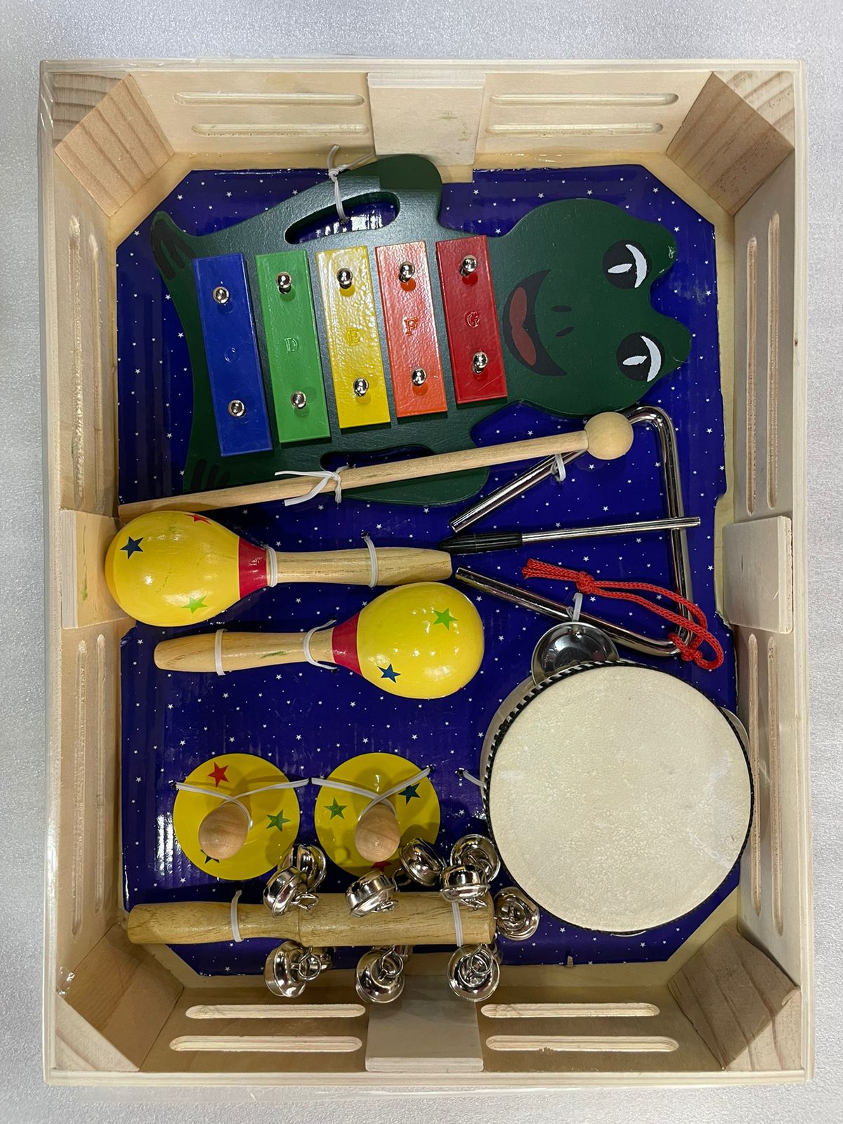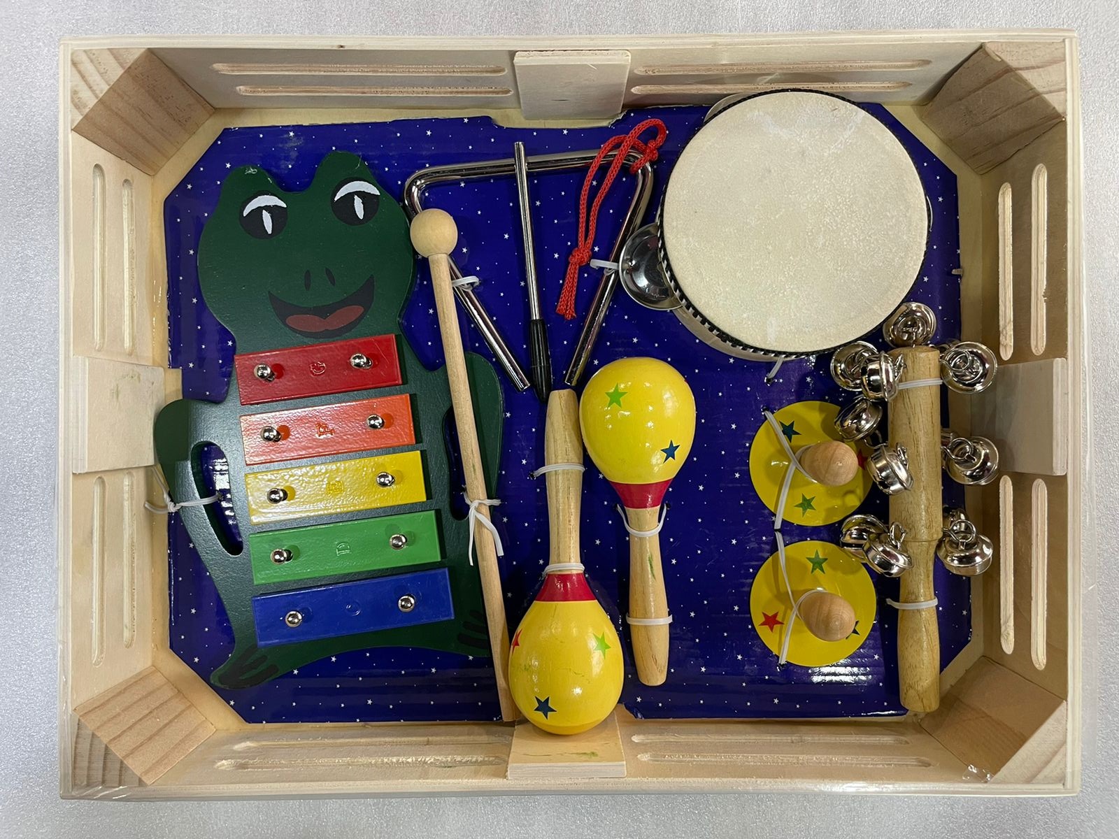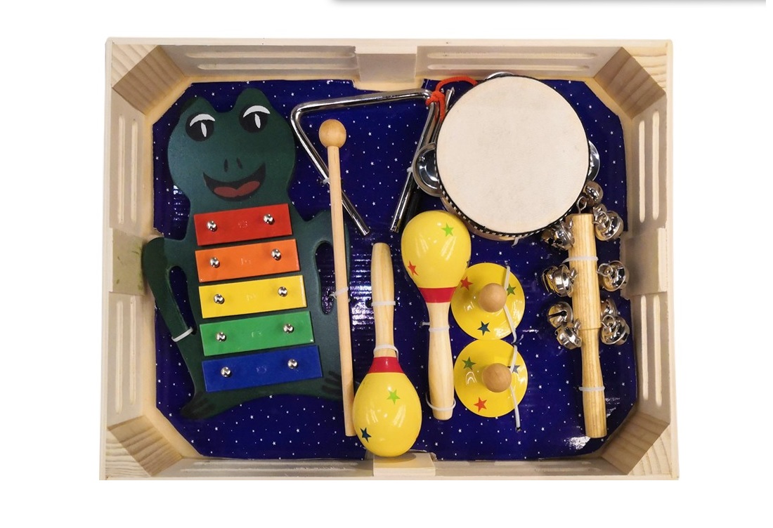 Набор детской перкуссии BRAHNER DP-551, металлофон, треугольник, бубен, бубенцы, маракасы, пальчиковые тарелочки