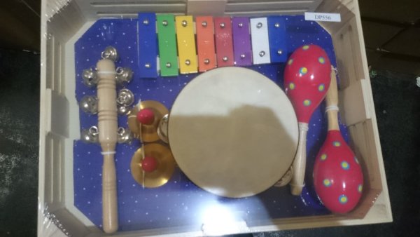 Набор детской перкуссии BRAHNER DP-556, металлофон (8 нот), бубен, бубенцы, маракасы, пальчиковые тарелочки