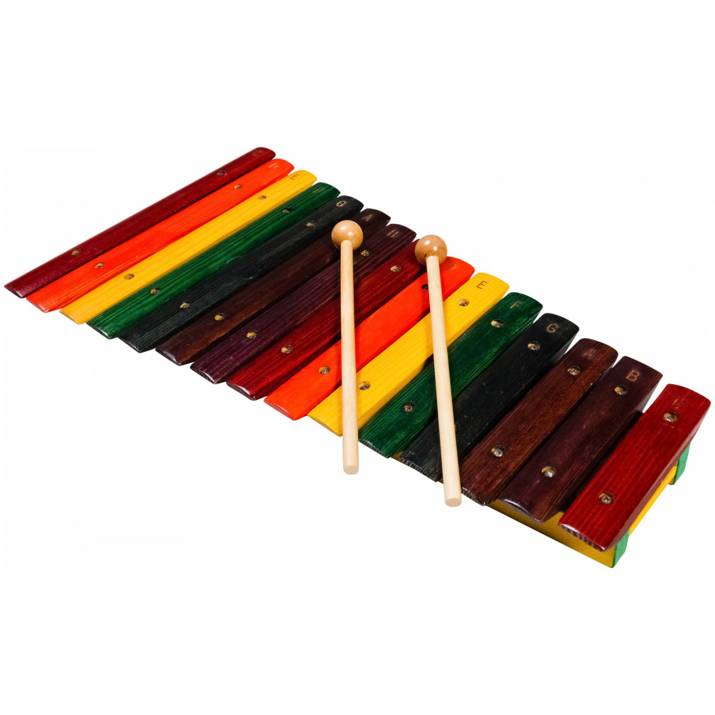 У данной модели 15 разноцветных деревянных брусочков, соответствующих нотам, и 2 палочки.