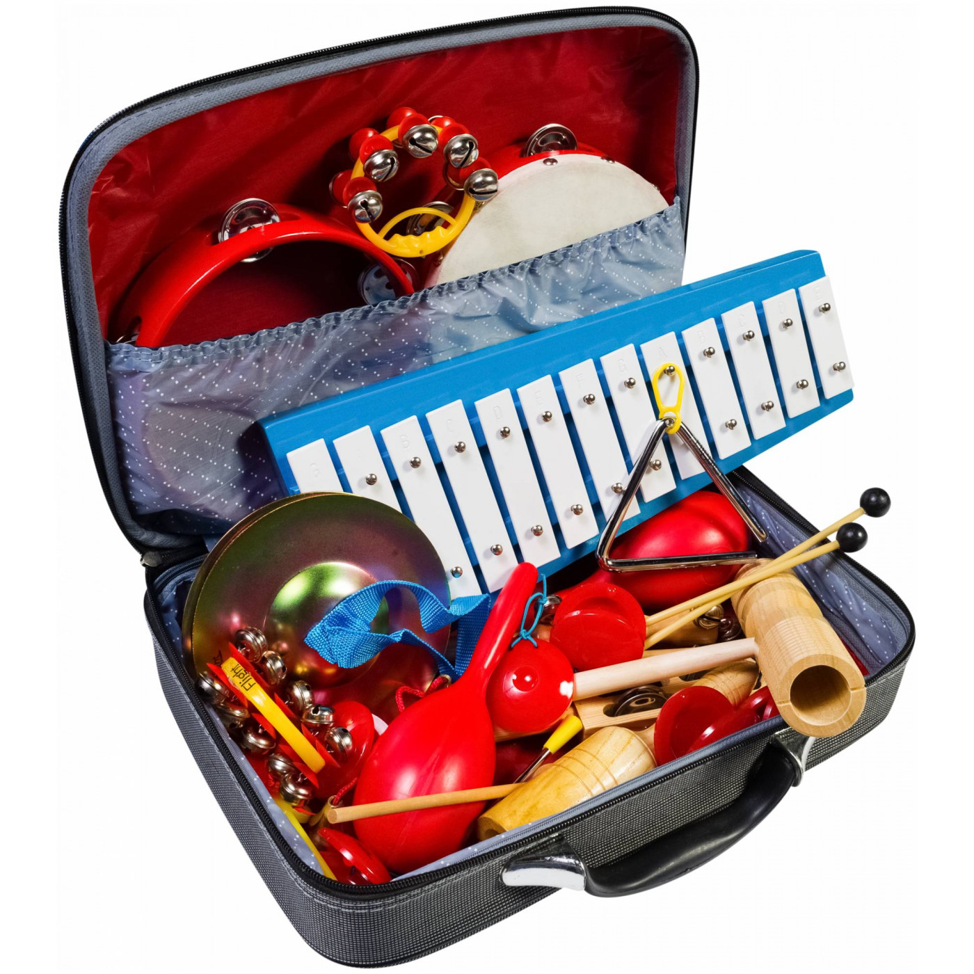 Набор упакован в компактную сумку и станет отличным подарком для тех, кто неравнодушен к музыке, а также подойдет детям в качестве первого знакомства с музыкальными инструментами.