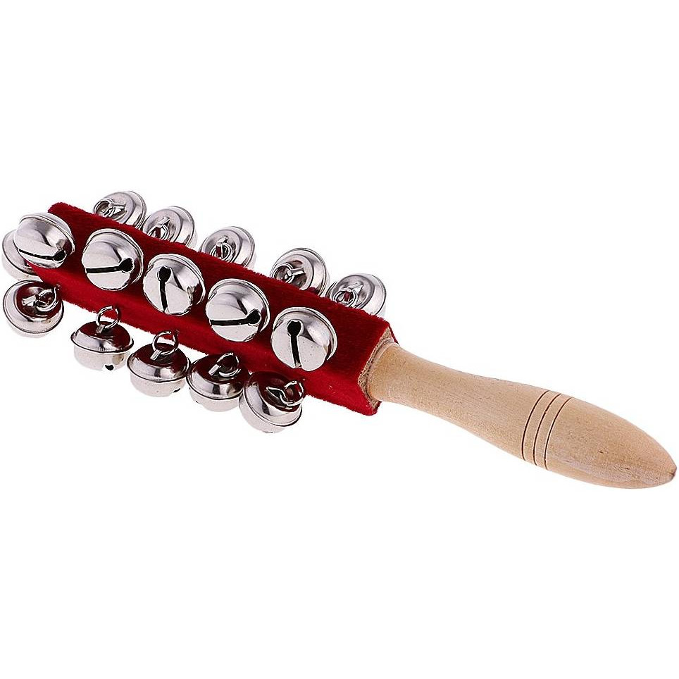 Данная модель сделана из дерева, цвет - натуральный. На корпусе, обтянутом бархатом, закреплен 21 бубенчик. Размер инструмента 22 см.