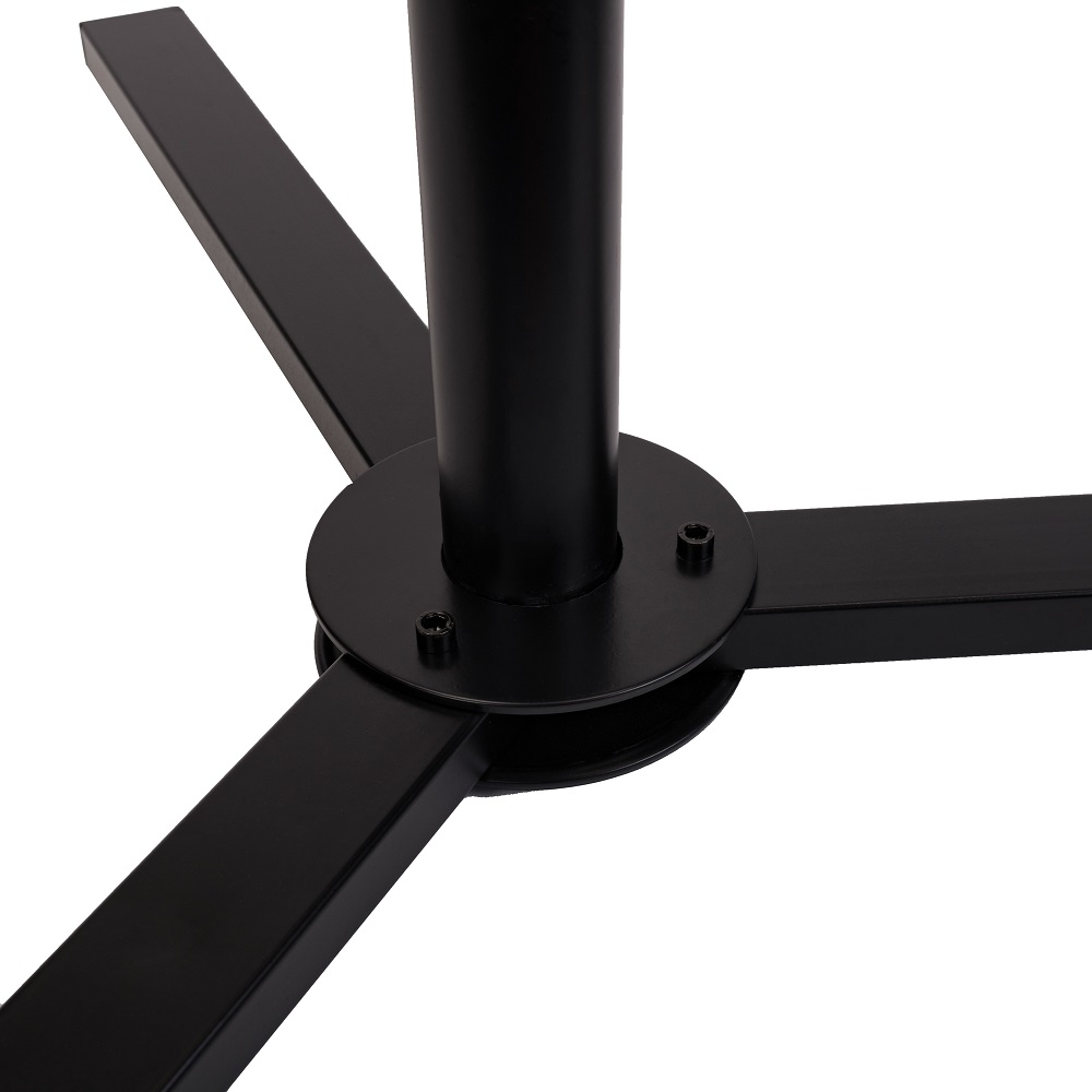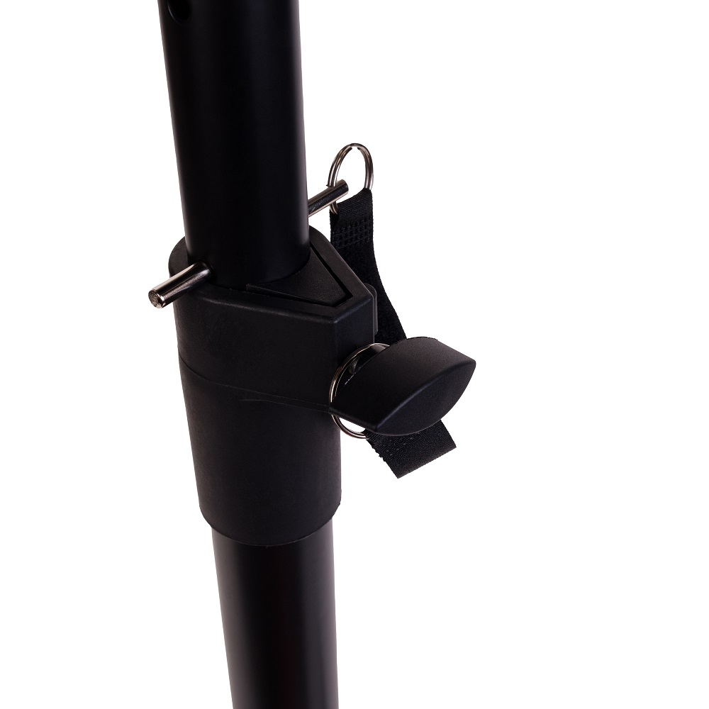 Высоту можно настроить в диапазоне от 70 до 115 см. Акустика размещается на горизонтальной панели площадью 23 см х 23 см сверху стойки. Предусмотрено четыре отверстия для закрепления монитора. Кронштейн выполнен из прочной стали, окрашен в черный цвет.